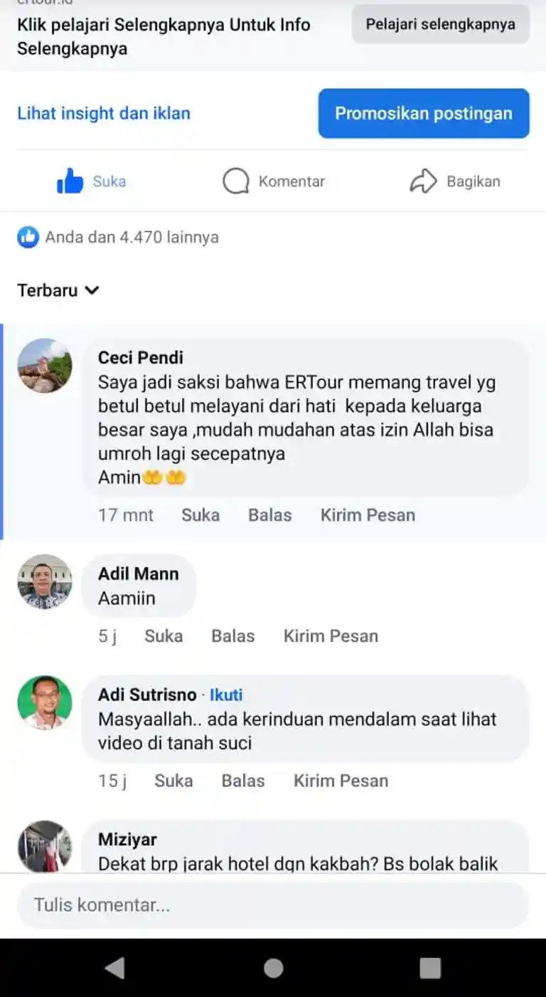 Bapak/Ibu tidak perlu khawatir ditelantarkan—kami hadir, mendampingi, dan peduli di setiap langkah ibadah. Karena di ERTOUR, setiap jemaah adalah keluarga yang harus dijaga dengan sepenuh hati.